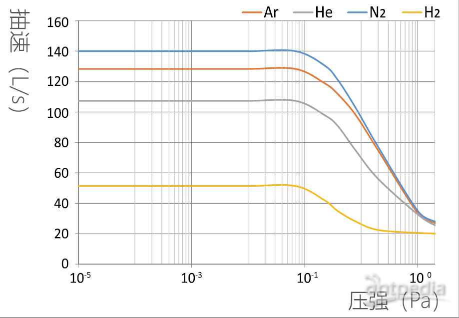 抽速速率(l/s):N2:150 He:100 H2:50 Ar:130