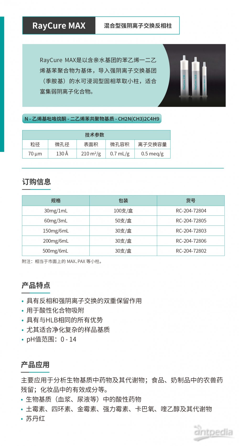 RayCure MAX 混合型强阴离子交换反相柱由睿科集团股份有限公司 为您提供,如您想了解更多关于RayCure MAX 混合型强阴离子交换反相柱报价、货号、参数等信息 ,欢迎来电或留言咨询。
