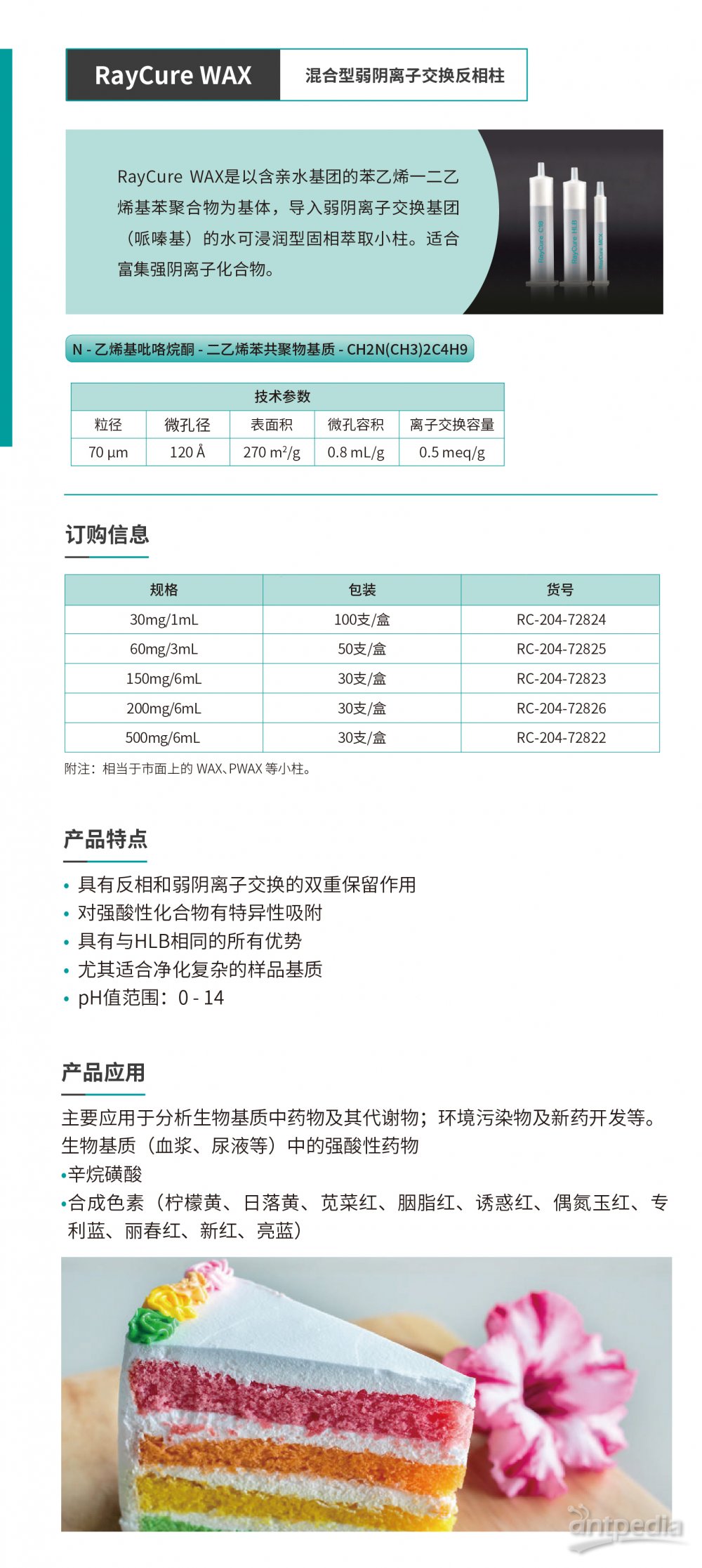 RayCure WAX 混合型弱阴离子交换反相柱由睿科集团股份有限公司 为您提供,如您想了解更多关于RayCure WAX 混合型弱阴离子交换反相柱报价、货号、参数等信息 ,欢迎来电或留言咨询。