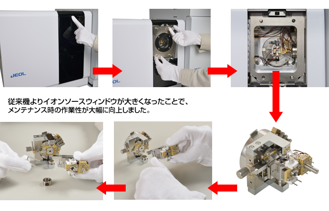 JMS-Q1500GC采用了大离子源窗口设计,便于维护保养,离子源的取出和插入离子化室都无需工具。