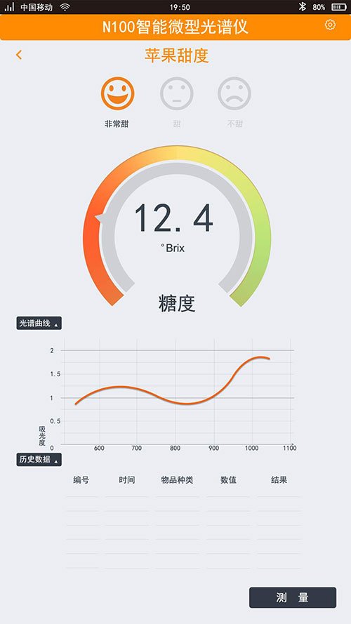 该软件基于Android平台开发和使用,中文界面,界面友好,操作简便、人性化设置。具有暗电流扫描、参比扫描、样品扫描、查看/显示光谱、下载模型、调用模型等主要功能。