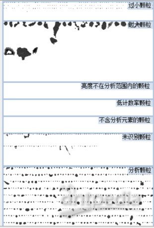 2.图像化显示测量结果分布图显示夹杂物 显示夹杂物在分析区域的分布、放大显示夹杂物实际形貌、用鼠标指向夹杂物显示夹杂物的信息包括 x-ray 图谱、 只显示关心的颗粒、移动电镜到分析颗粒排列图显示夹杂物 按规律排列图显示夹杂物、夹杂物种类、夹杂物尺寸、用鼠标指向夹杂物显示夹杂物的信息包括 x-ray 图谱、 只显示关心的颗粒、移动电镜到分析颗粒、
