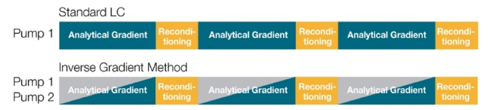 相对于标准液相色谱,反梯度法新增了梯度反向步骤,因此产生的洗脱液成分一致。